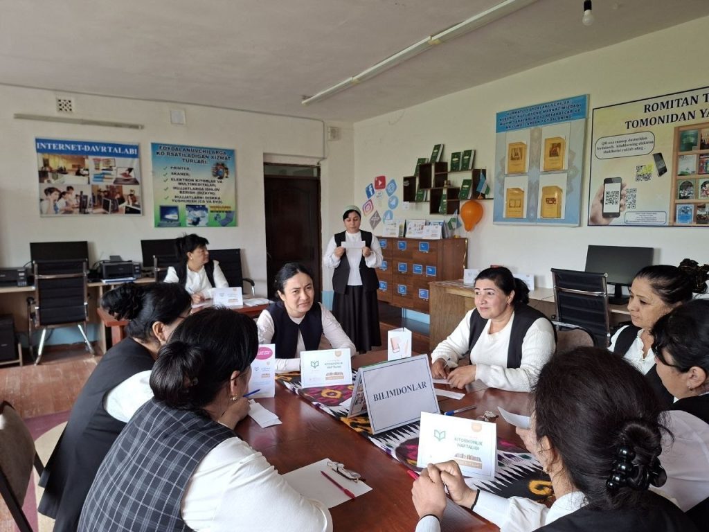 📌📌📌2026-yil 17-aprel kuni Romitan tuman Axborot-kutubxona markazida Oʻzbekiston Respublikasi Prezidentining 2026-yil 15-yanvardagi “Kitobxonlik madaniyatini rivojlantirish va aholi oʻrtasida kitob oʻqishga qiziqishni oshirish chora-tadbirlari to‘gʻrisida” PQ-9-son qarori ijrosini taʼminlash hamda ma’naviy-ma’rifiy ishlar samaradorligini oshirish va sohani rivojlantirish bo‘yicha chora-tadbirlar yuzasidan yo‘l xaritasida belgilab qo‘yilgan vazifalarni bajarish maqsadida «Kitobsevar millat» shiori ostida VI Respublika «Kitobxonlik haftaligi» doirasida xodimlar o‘rtasida “Har oyda bir kitob” loyihasi asosida “Zakovat” intellektual oʻyini o‘tkazildi.